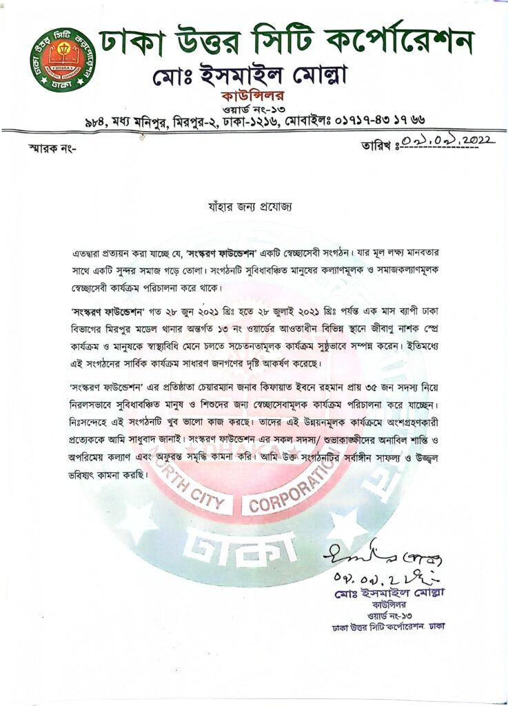 Appreciation Letter of Aedes Prevention Campaign