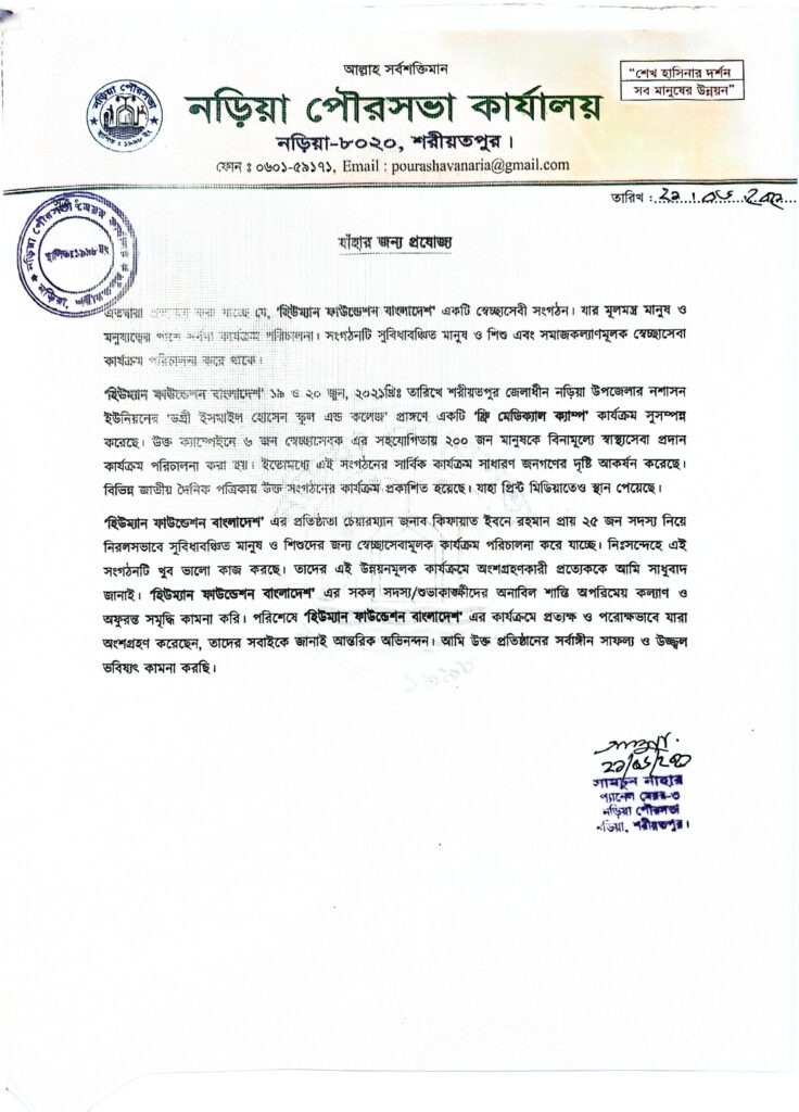Appreciation Letter of Free Medical Campaign