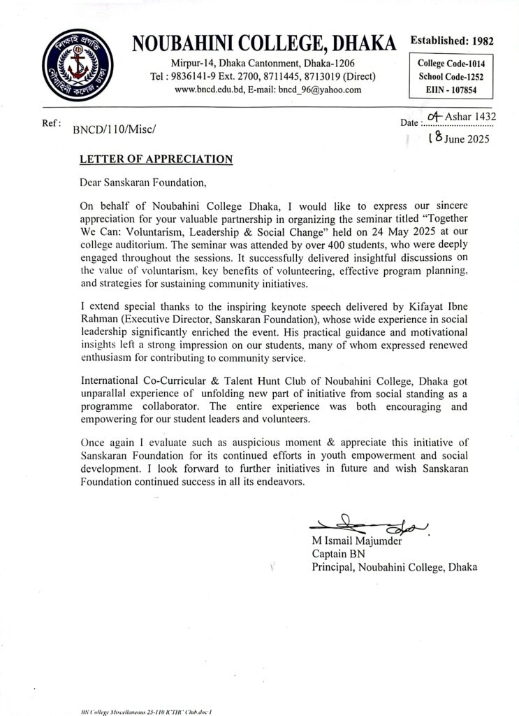 Appreciation Letter of Youth Leadership Seminar